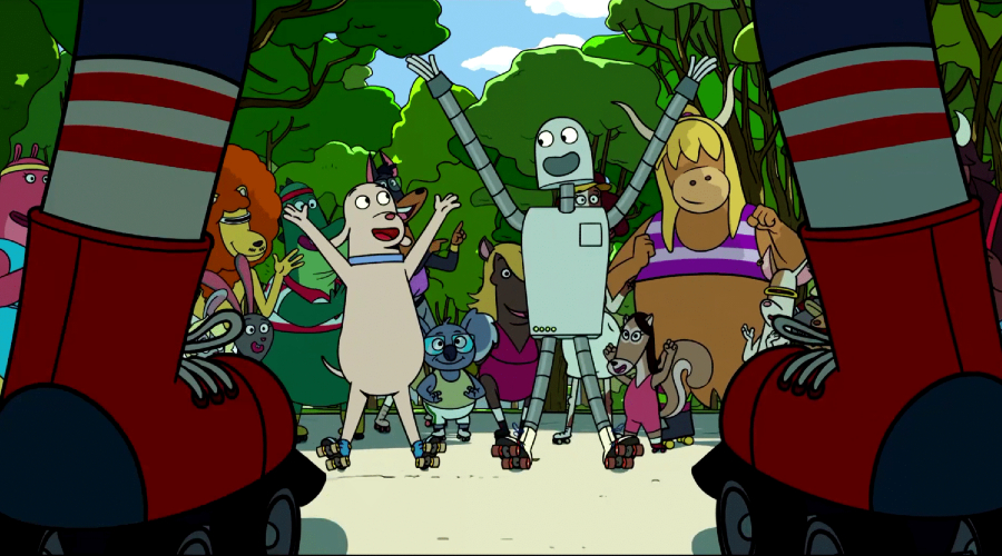 Berger adapta el cómic homónimo de la historietista Sara Varon (publicado en 2007) y le otorga, como un pase de magia, sonido y movimiento a sus viñetas: mantiene la línea clara, el naturalismo de su paleta de colores y el diseño sintético de los personajes, prescindiendo del diálogo. Todo en Mi amigo robot planta bandera -sin aspavientos, pero con decisión- por un minimalismo extremo. El protagonista, un perro llamado Dog, padece la soledad de las grandes metrópolis en la Manhattan de la década del 80. Un aviso televisivo convence a Dog de pedir un compañero mecánico, un robot al cual conoceremos como -ya lo habrán adivinado- Robot. Entre ambos florece un vínculo tierno y profundo lleno de posibilidades que se multiplican a medida que recorren las calles soleadas al ritmo de «September», el himno disco de Earth, Wind & Fire: “Nuestros corazones sonaban/en la clave que nuestros corazones cantaban”.