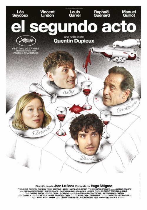El segundo acto Ficha técnica 80 +13 Género: Comedia Año: 2024País: Francia Distribuidora: Zeta FilmsFecha de Estreno: 6 de febrero, 2025Dirección: Quentin DupieuxElenco: Léa Seydoux, Vincent Lindon, Raphaël Quenard, Louis Garrel, Manuel Guillot, Françoise Gazio.Título original: Le deuxième acte Todos los cinesCine VisualTodas las zonasBahía BlancaSemana del 12/03 al 18/03Cine Visual19:30 (Solo domingo y martes) - 2D Subtitulada Sinopsis Florence quiere presentarle a David, el hombre del que está locamente enamorada, a su padre. Pero David no se siente atraído por ella y quiere arrojarla a los brazos de su amigo Willy. Trailer